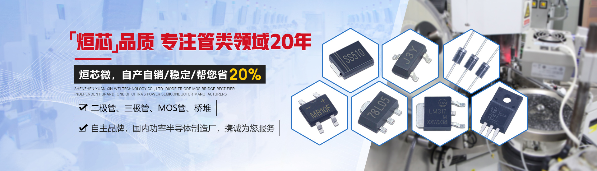 深圳市烜芯微科技有限公司是一家集研發(fā)、生產(chǎn)、銷售于一體,專注于二極管、三極管,MOS管、橋堆等功率半導(dǎo)體領(lǐng)域發(fā)展的企業(yè)。采用國(guó)際領(lǐng)先的GPP芯片生產(chǎn)工藝及一心多Die高精密制造工藝,擁有功率半導(dǎo)體器件工程實(shí)驗(yàn)室,全自動(dòng)高精密生產(chǎn)設(shè)備,產(chǎn)品層層把控,全程可追溯,保障了每只產(chǎn)品的卓越品質(zhì)。 產(chǎn)品封裝包括SMA,SMAF,SMB,SMBF,SMC,SOD-123,SOD-123FL,SOD-323,SOD-323FL,SOD-523,SOD-723,SOT-23,SOT-89,SOT23-3L,SOT23-5L,SOT23-6L,SOT-223,SOT-523,SOT-723,DO-41,DO-15,DO-27,DO-35,R-1,R-6,LL-34,LL-41,TO-277,TO-92,TO-92S,TO-92L,TO-126,TO-251,TO-252,TO-262,TO-263,TO-220,TO-220F,TO-247,TO-3P,TO-264,MBS,MBF,MBM,ABS,UMB,UMSB,DB,DBS,D3K,KBP,GBP,GBU,GBL,GBJ,KBL,KBU,KBJ,KBPC,KBPC6,KBPC8,KBPC-W,DNF,TSSOP-8,TSSOP-16,SOP-4,SOP-6,SOP-8,SOP-10,SOP-14,SOP-16,DIP-4,DIP-6,DIP-8,DIP-10,DIP-14,DIP-16,月產(chǎn)各封裝達(dá)6億只。 公司通過(guò)了ISO14001環(huán)境管理體系認(rèn)證,產(chǎn)品均獲得了ISO9001質(zhì)量體系認(rèn)證、UL、SGS等認(rèn)證,符合歐盟最新RoHs指令。擁有和致力于烜芯微/XXW自主品牌產(chǎn)品的推廣,提供技術(shù)支持,選型替換,cost down方案及擁有專業(yè)的生產(chǎn)管理團(tuán)隊(duì)和銷售團(tuán)隊(duì),保證了供貨穩(wěn)定及售前選型服務(wù)等問(wèn)題。 公司產(chǎn)品廣泛應(yīng)用于開關(guān)電源、適配器、逆變器、控制器、汽車電子、家用電器、通訊設(shè)備、無(wú)線充、鋰電池保護(hù)板、驅(qū)動(dòng)電機(jī)、安防警報(bào)、太陽(yáng)能光伏產(chǎn)業(yè)等多個(gè)領(lǐng)域。取得了國(guó)內(nèi)外眾多品牌大廠的認(rèn)可與合作,我們將堅(jiān)持奉行“烜芯品質(zhì),誠(chéng)信經(jīng)營(yíng),合作共贏”為公司經(jīng)營(yíng)理念!竭誠(chéng)為新老客戶提供優(yōu)質(zhì)的產(chǎn)品及服務(wù)。